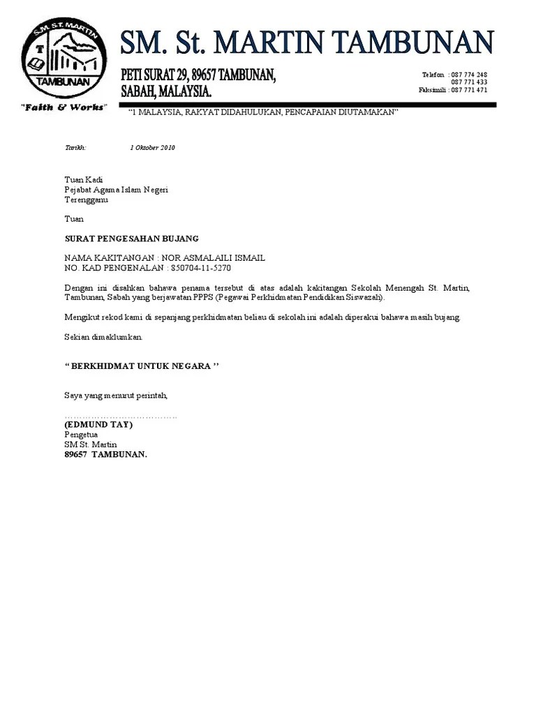 Contoh surat akuan bujang daripada majikan have an image from the .